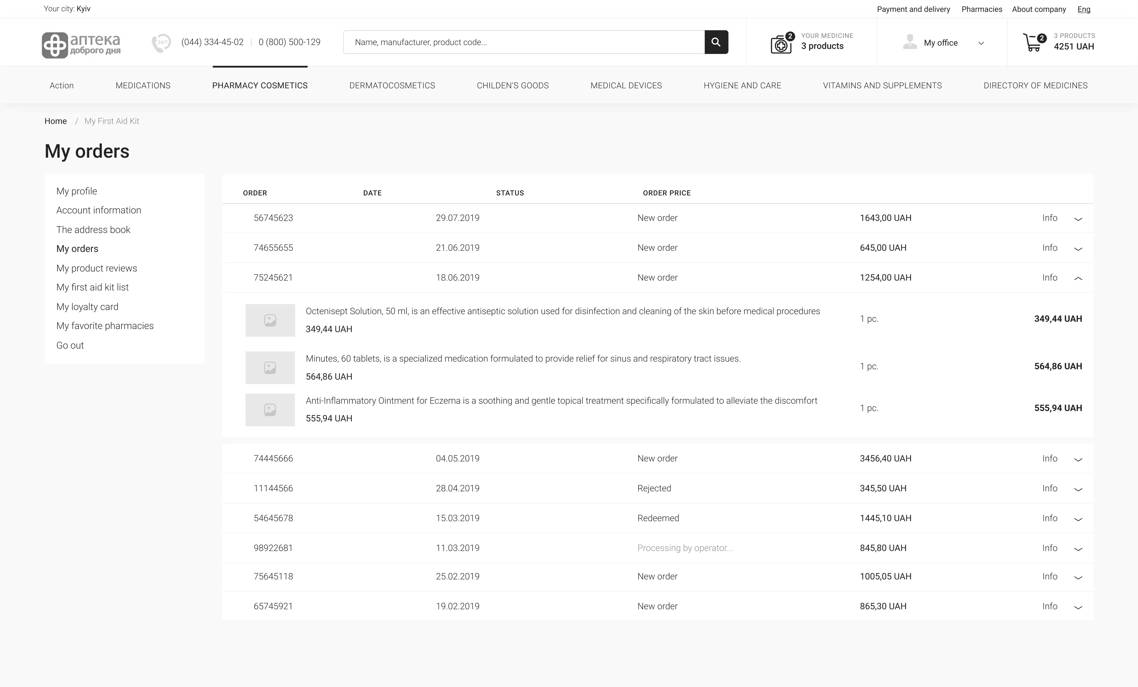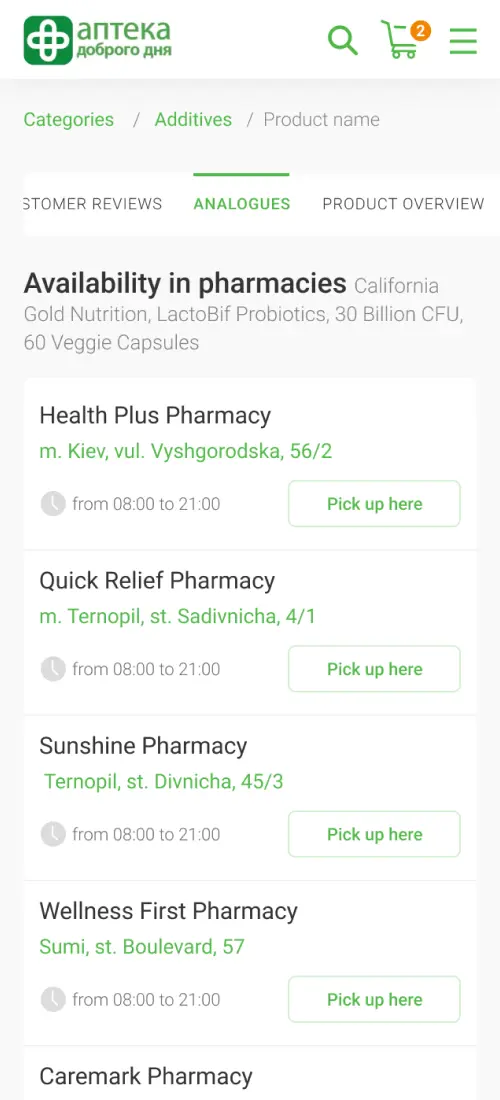 We completely revamped the order process into multiple stages, introduced the option to choose a specific pharmacy, modified the product card, and added toggles on top to ensure convenient access to key information on a single screen.