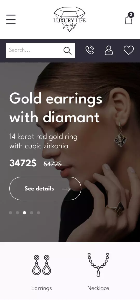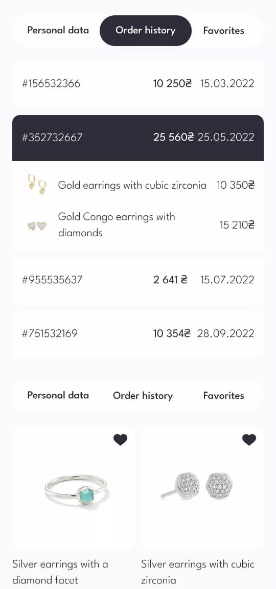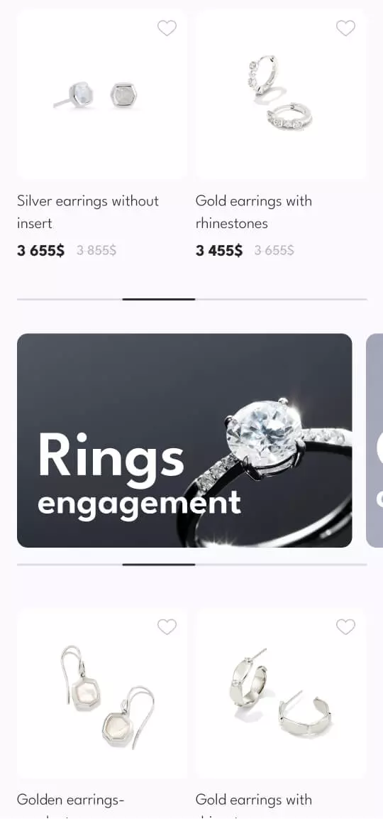 Простий та інтуїтивно зрозумілий інтерфейс для швидкого та зручного пошуку, перегляду та замовлення ювелірних виробів.