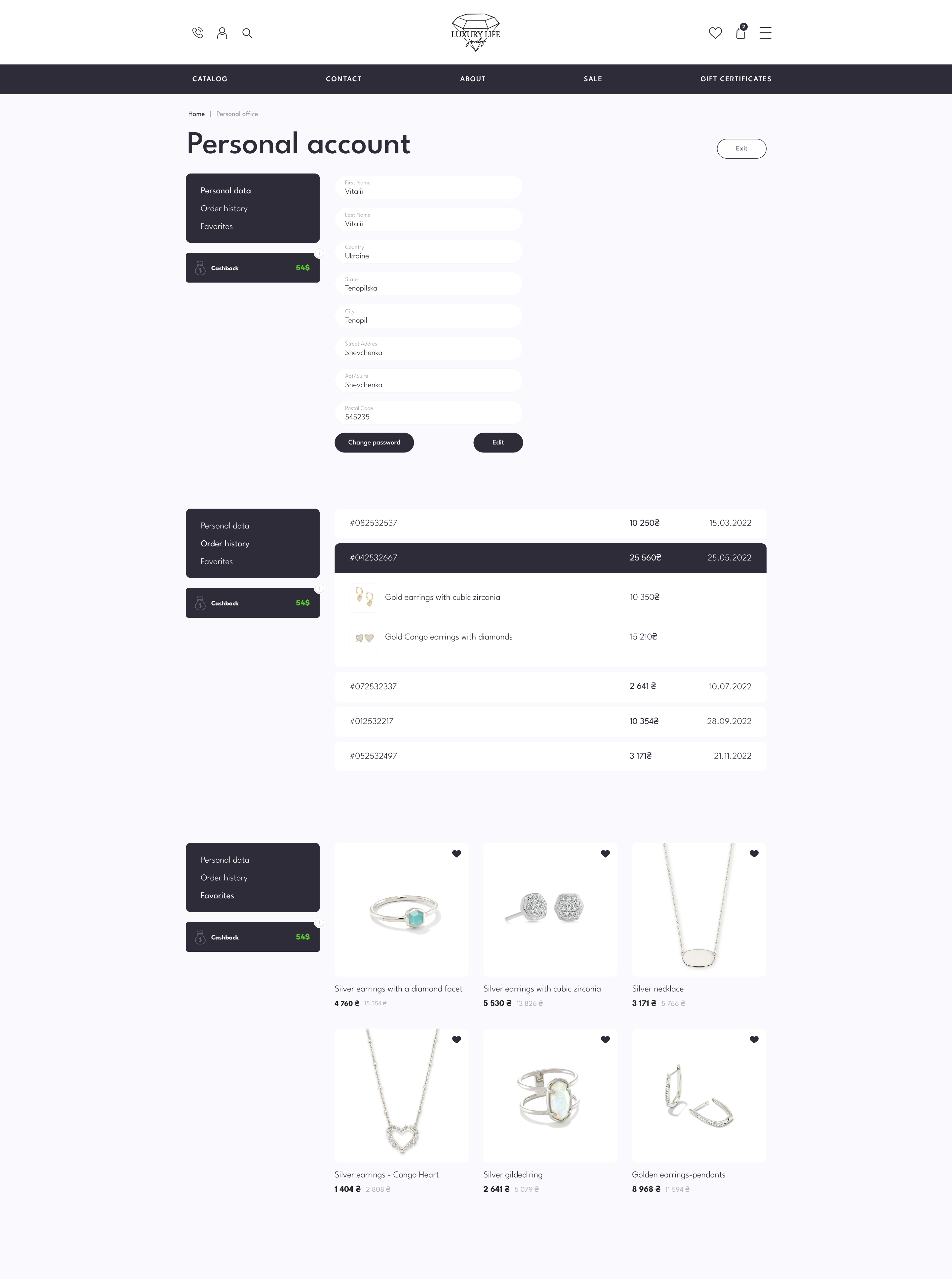 На цій сторінці можна переглядати та змінювати свою особисту інформацію, керувати своїми замовленнями, відстежувати стан доставки, зберігати улюблені товари та створювати списки бажань.