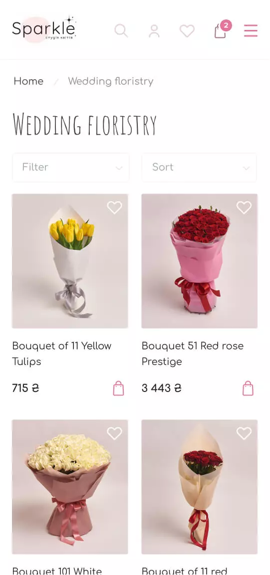 All pages have been designed for the mobile version, providing quick access to product information, easy navigation, and convenient order placement.