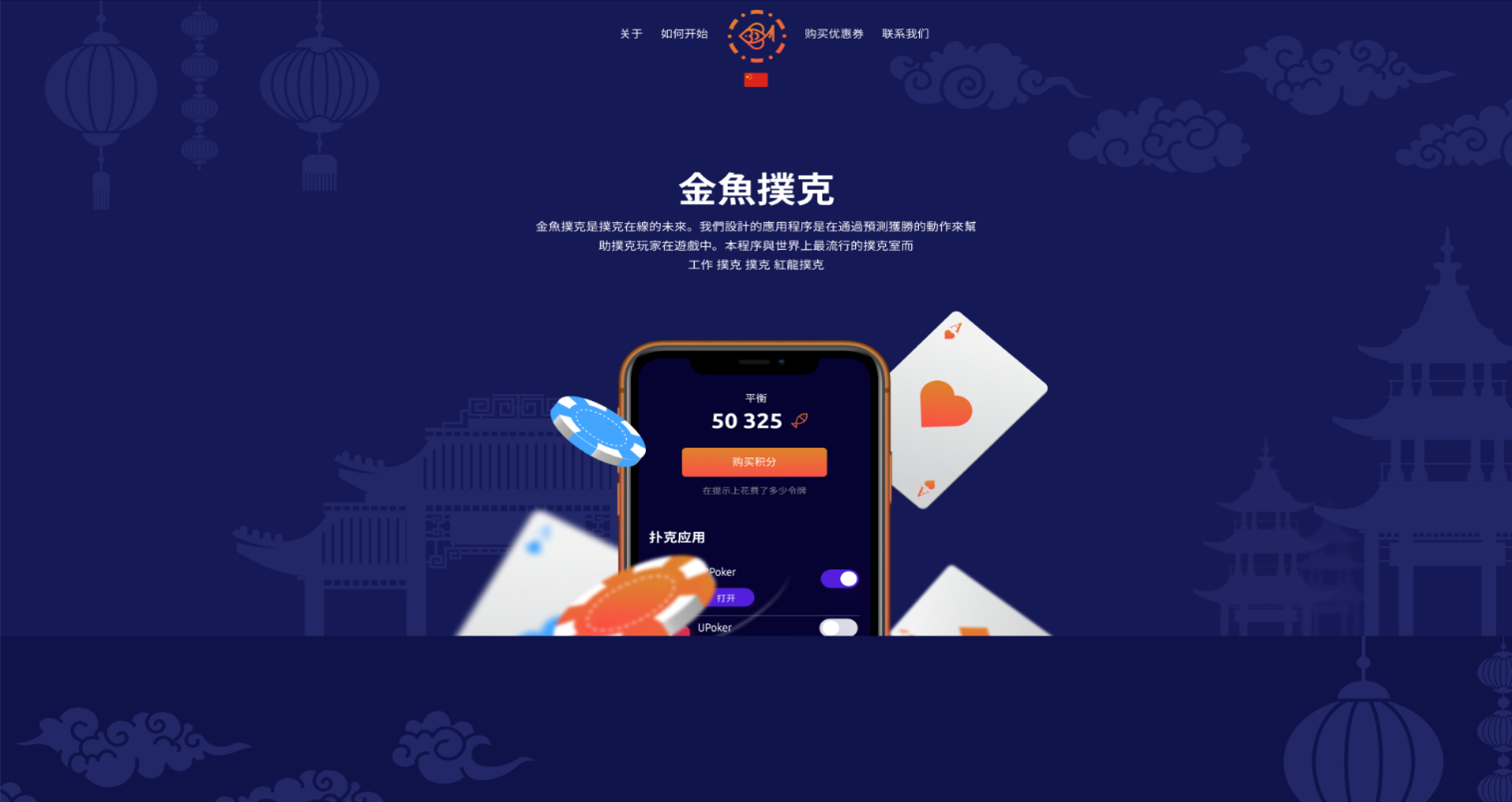 The page features captivating 3D images that create an incredible sense of presence at the poker table in a vibrant style, specifically designed to appeal to the Chinese audience.