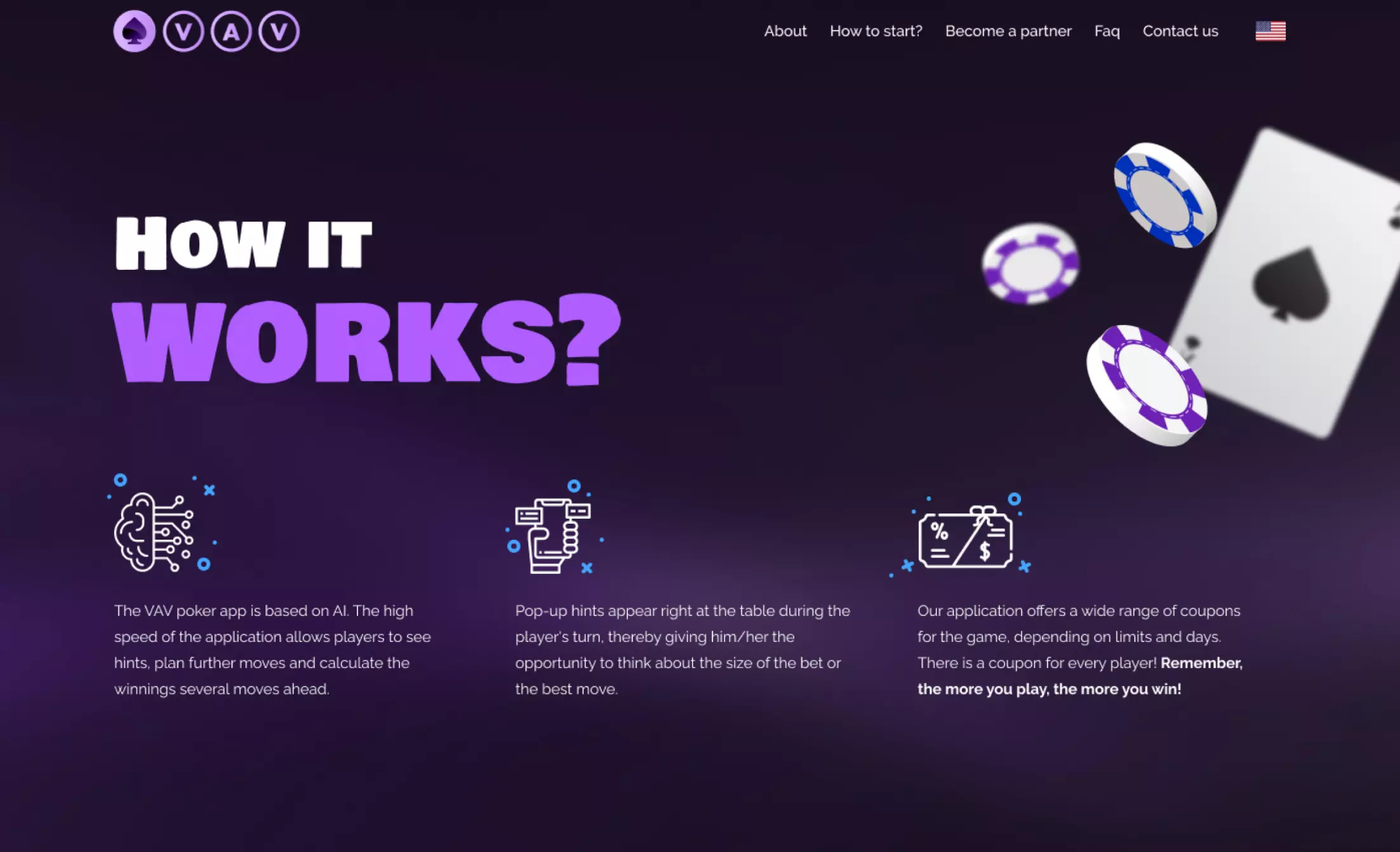 Develop a landing page that will attract people to learn about Poker Assistant, explain how it works, and encourage them to download the application.