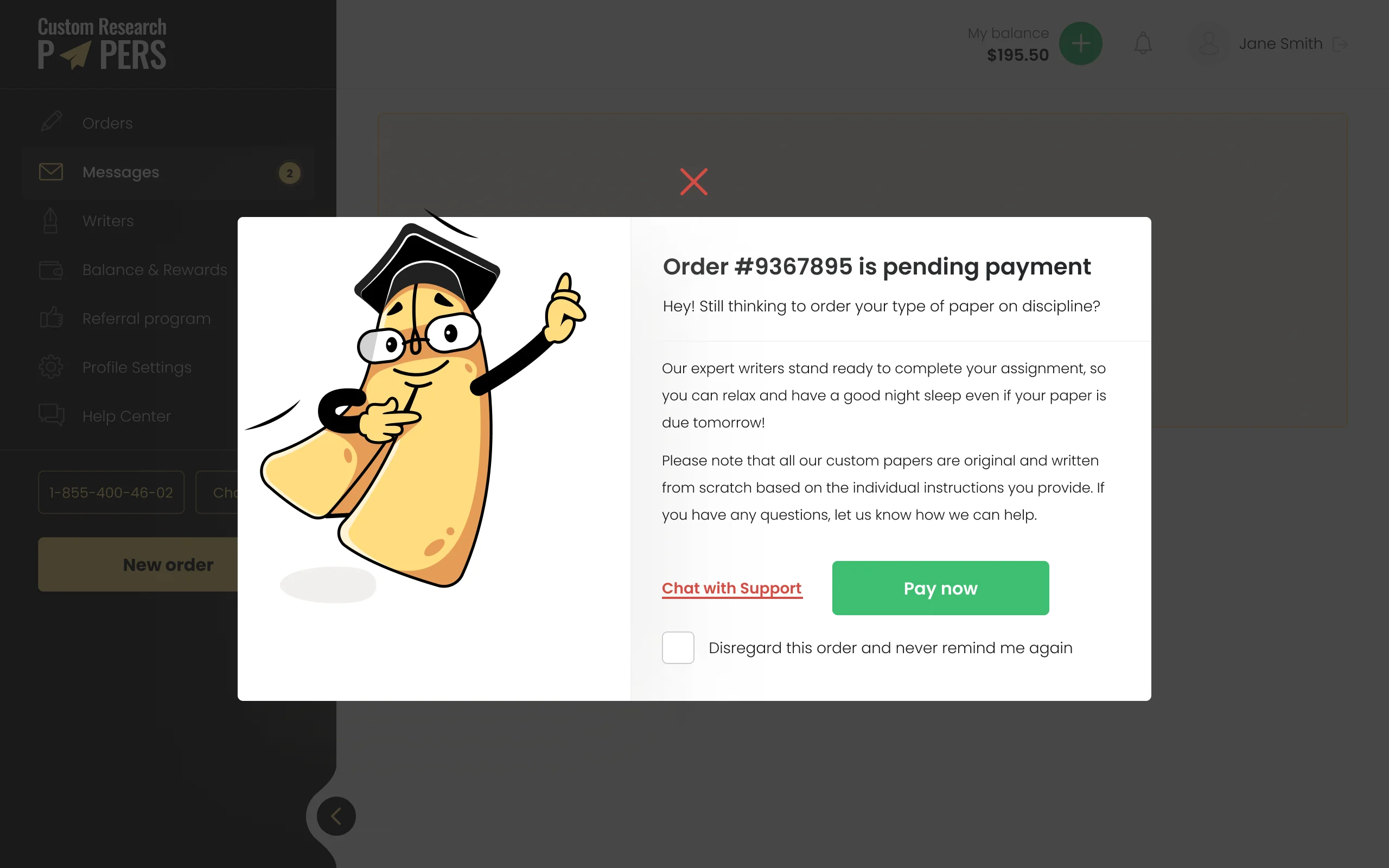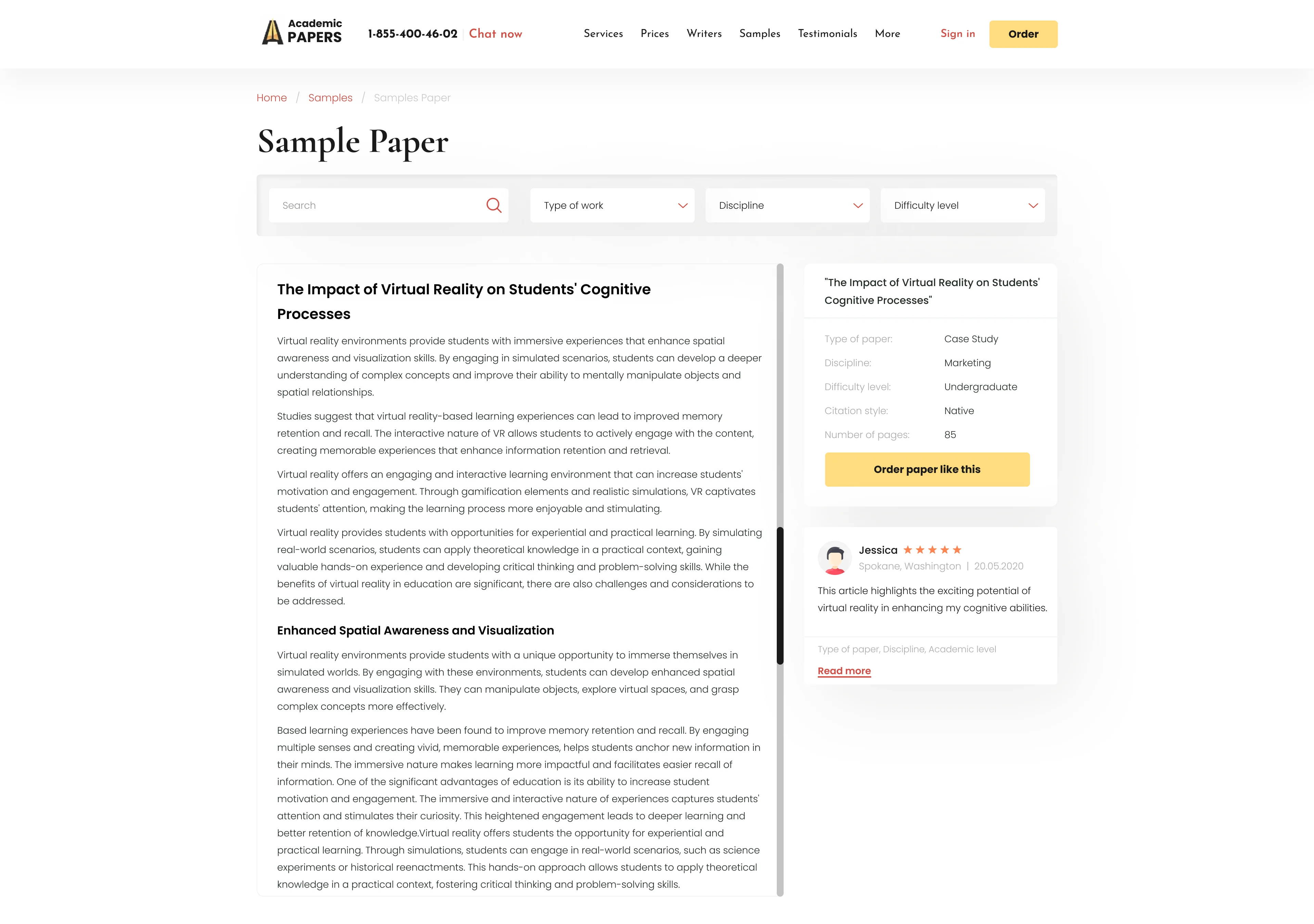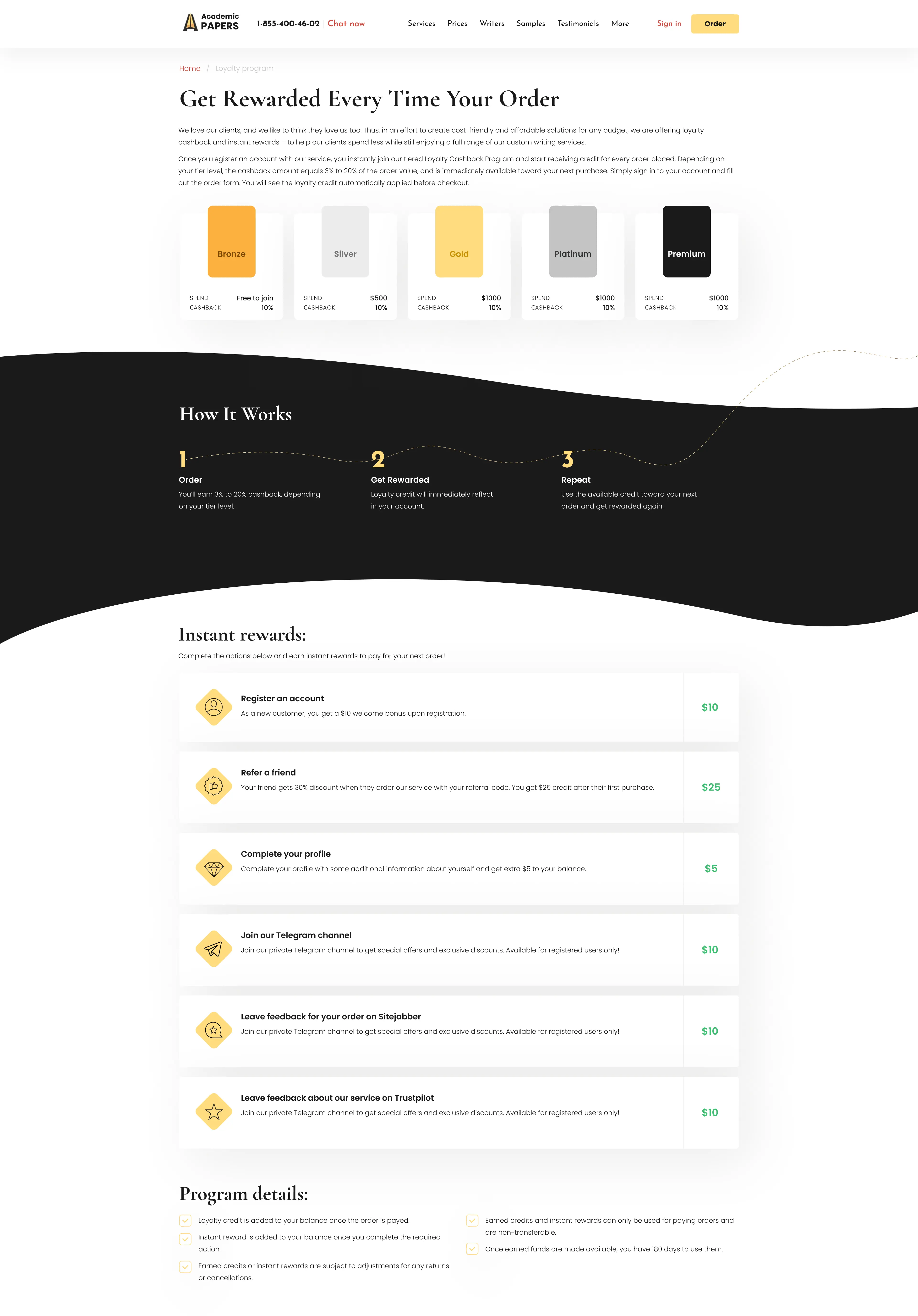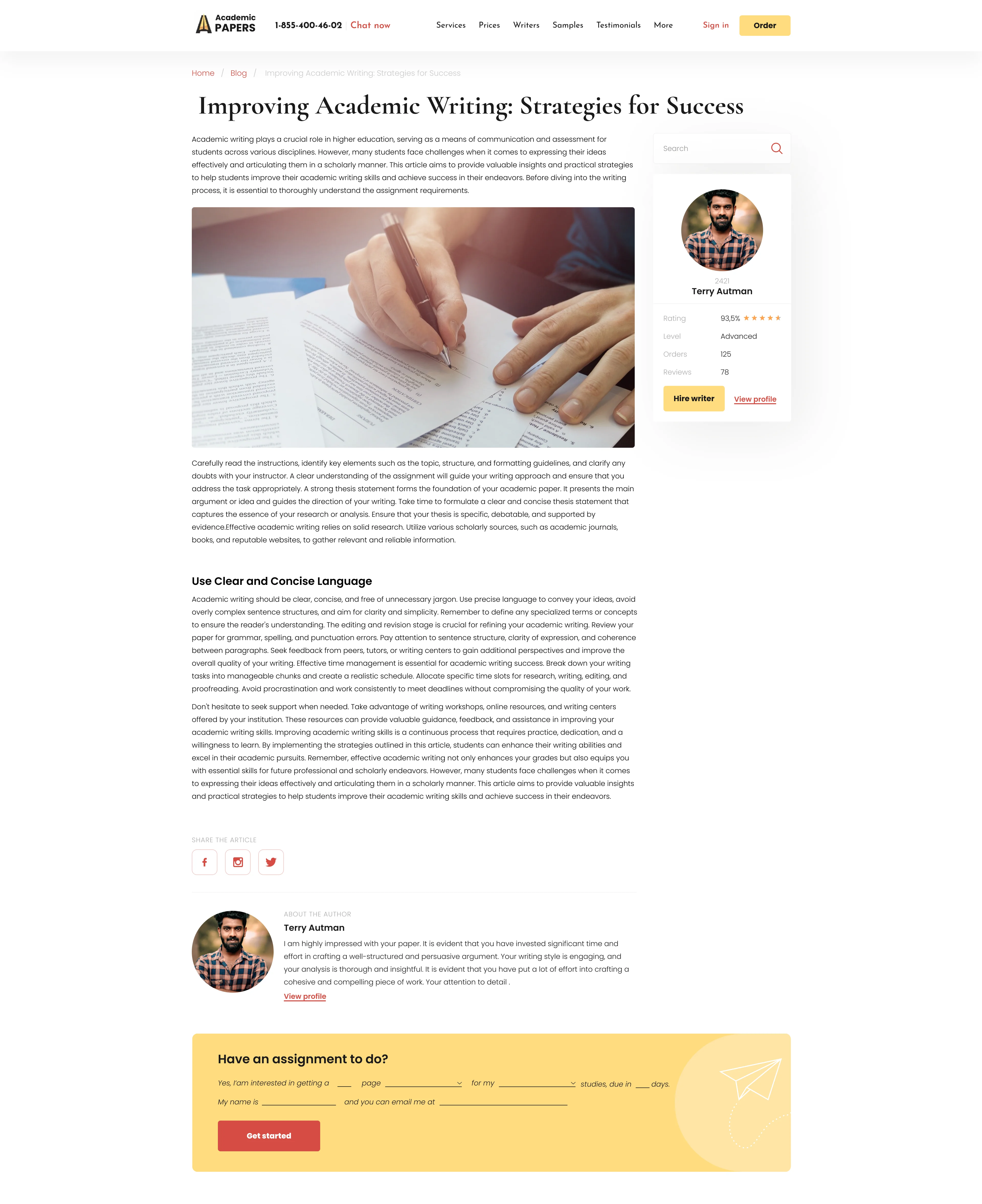 Convenient access to custom academic papers, showcasing information about key services, company benefits, client testimonials, and pricing plans.