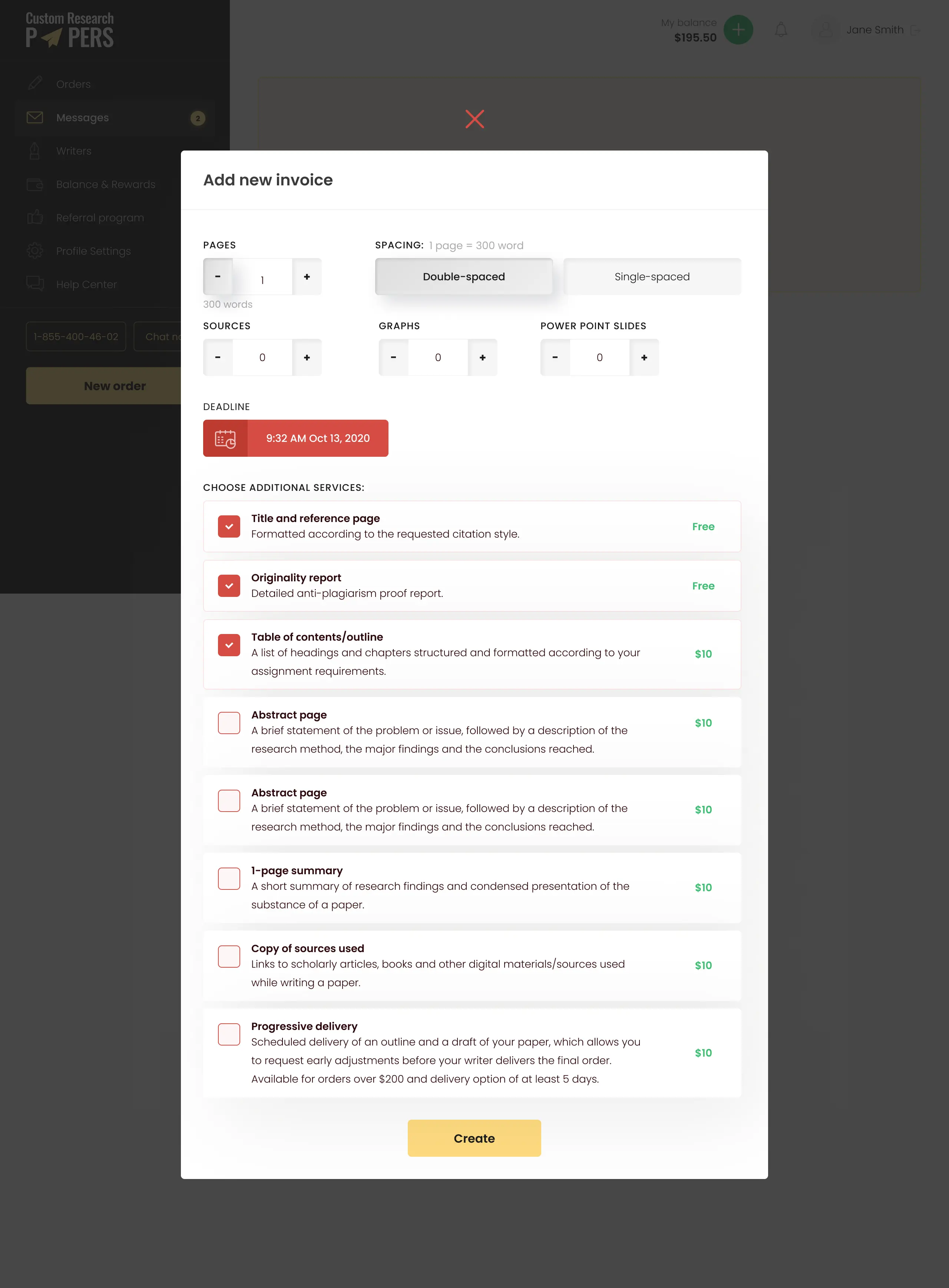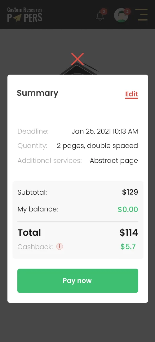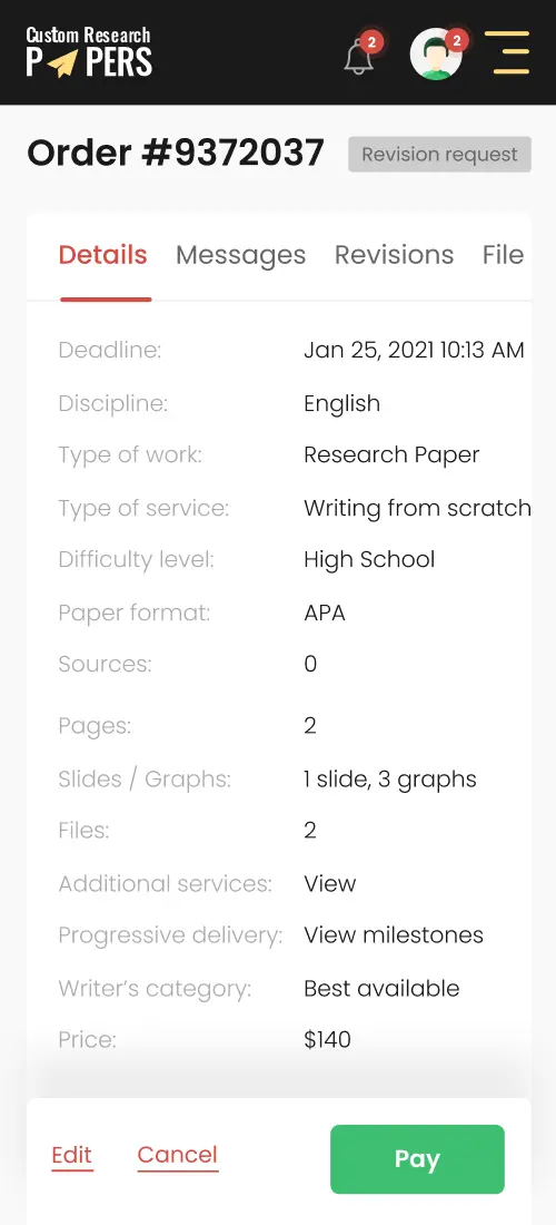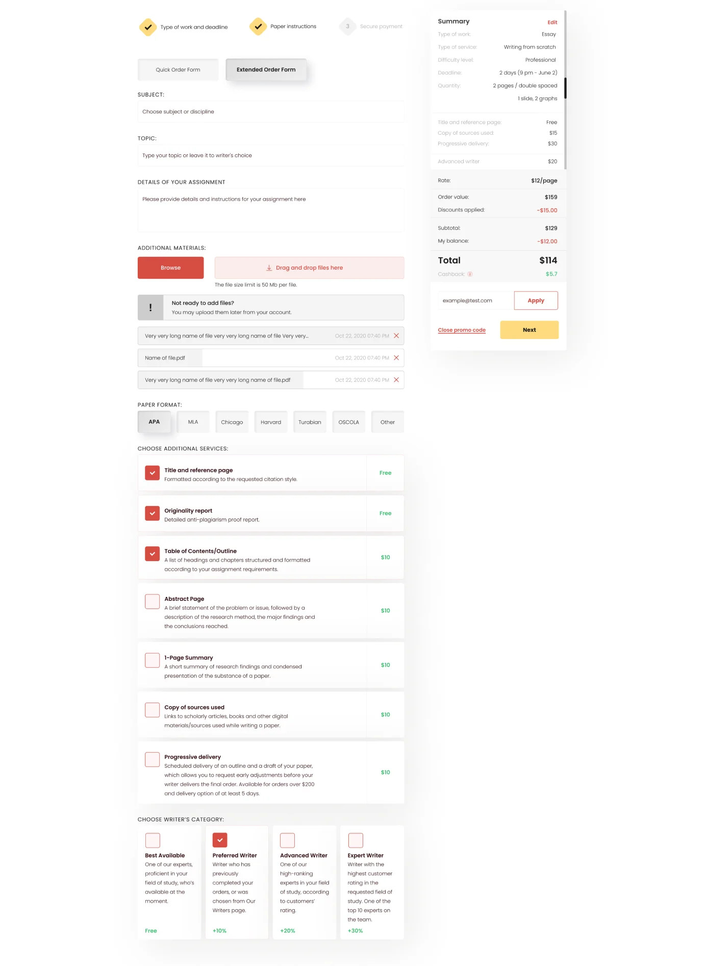 A developed order form provides detailed information about any ordered academic work and its cost, allowing users to immediately see what they are paying for.