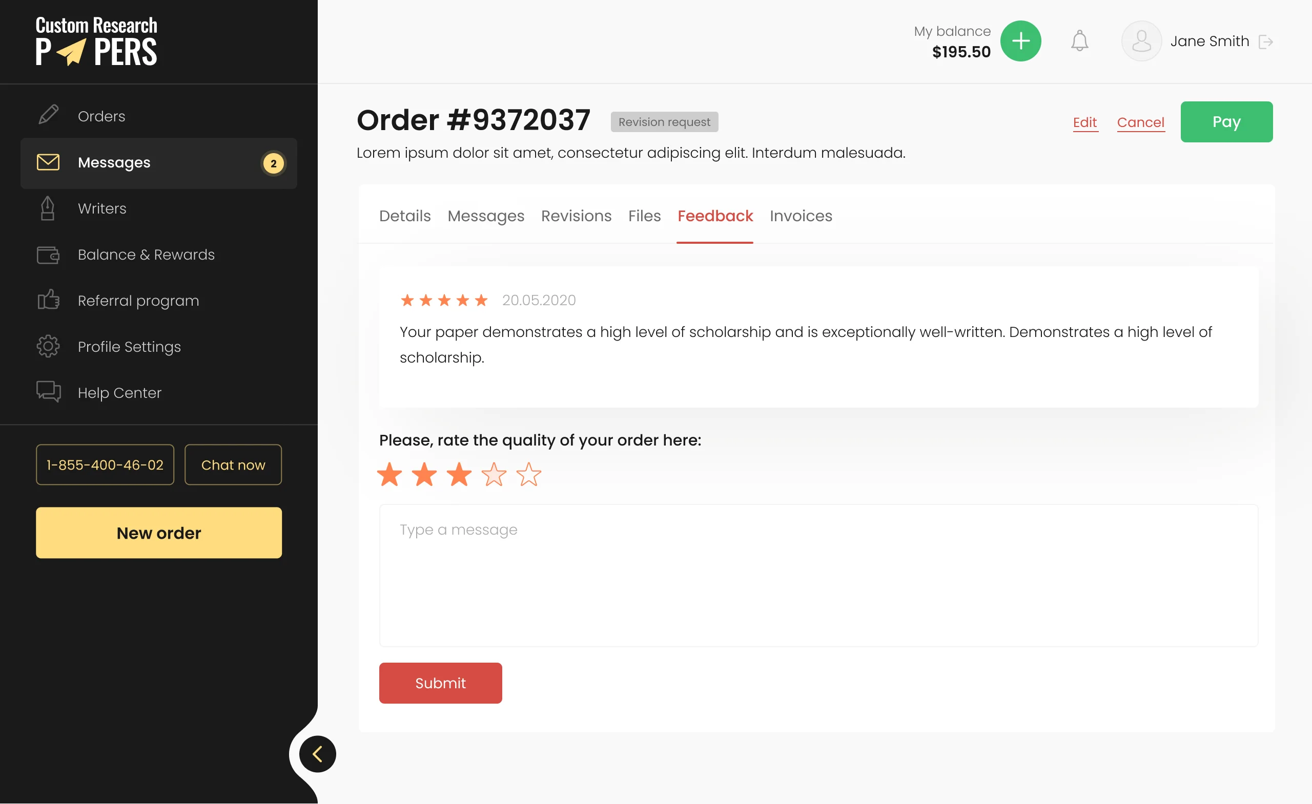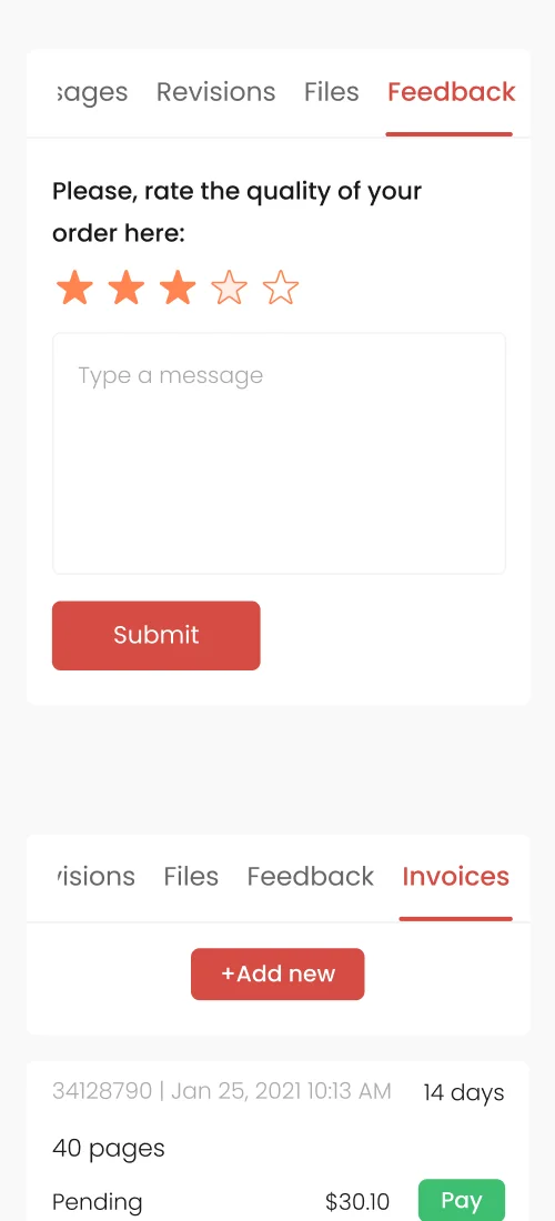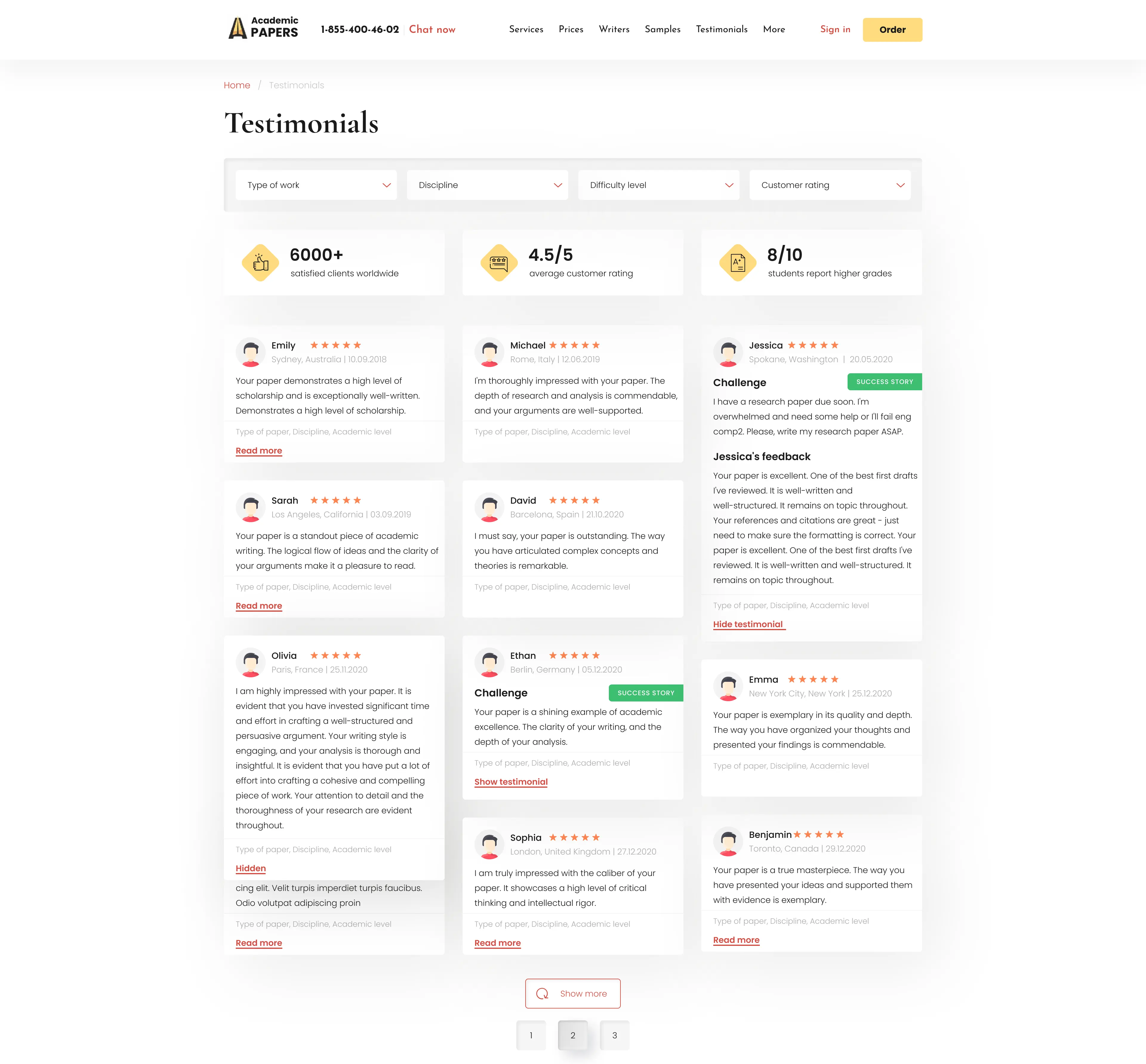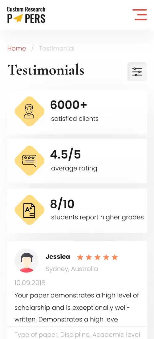 In this section, clients have the opportunity to learn about the quality of writers' work, the professionalism of the team, and the level of satisfaction with the obtained results.