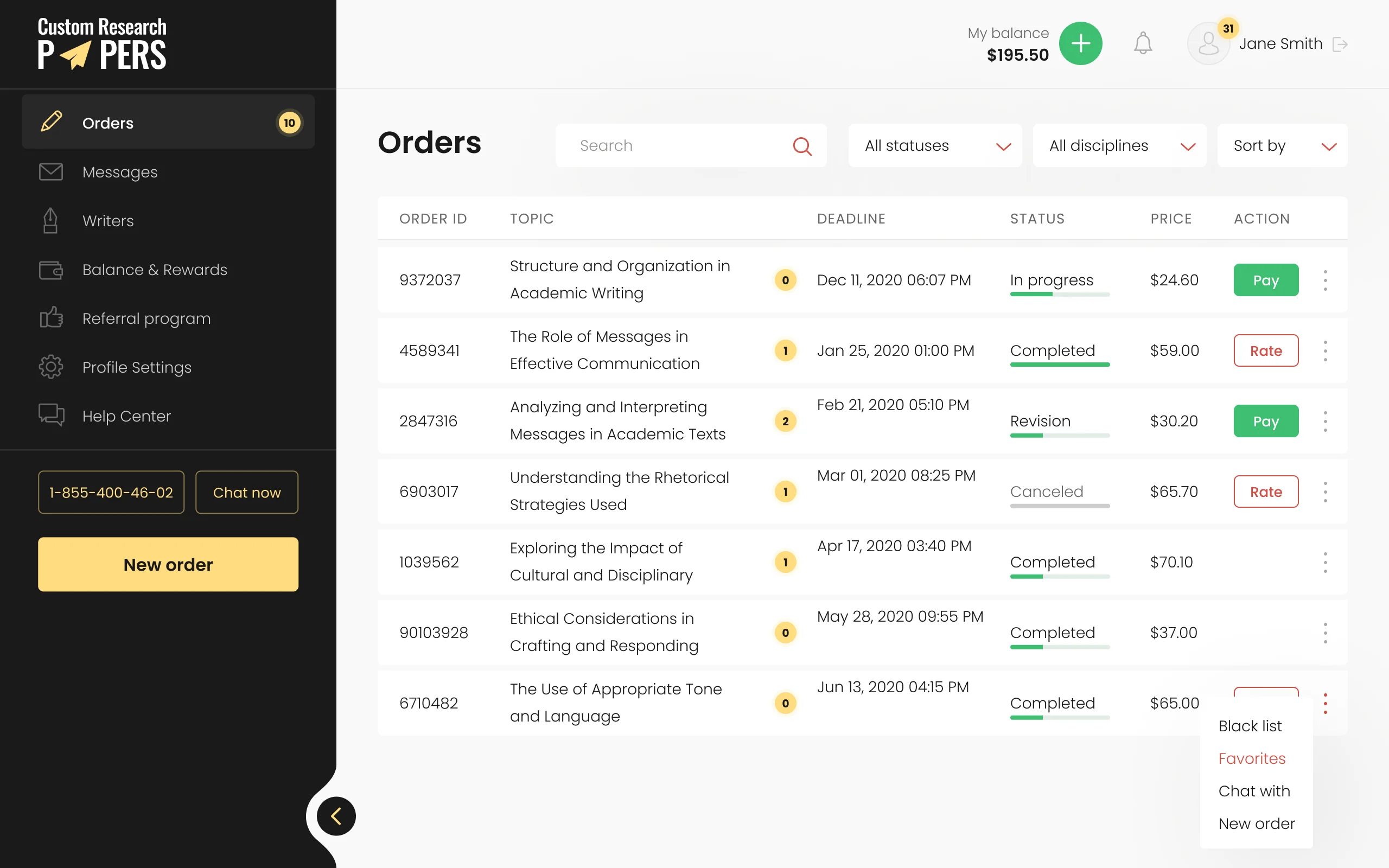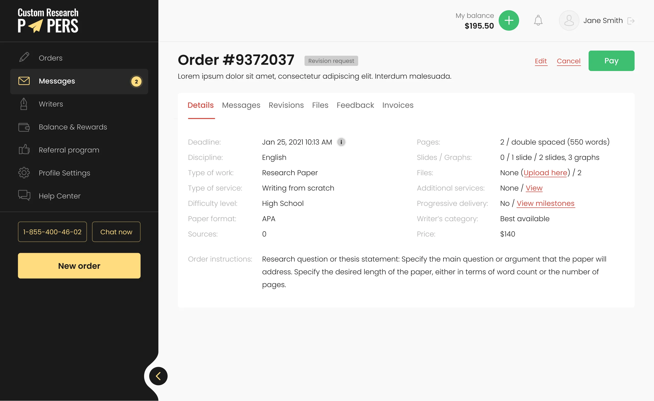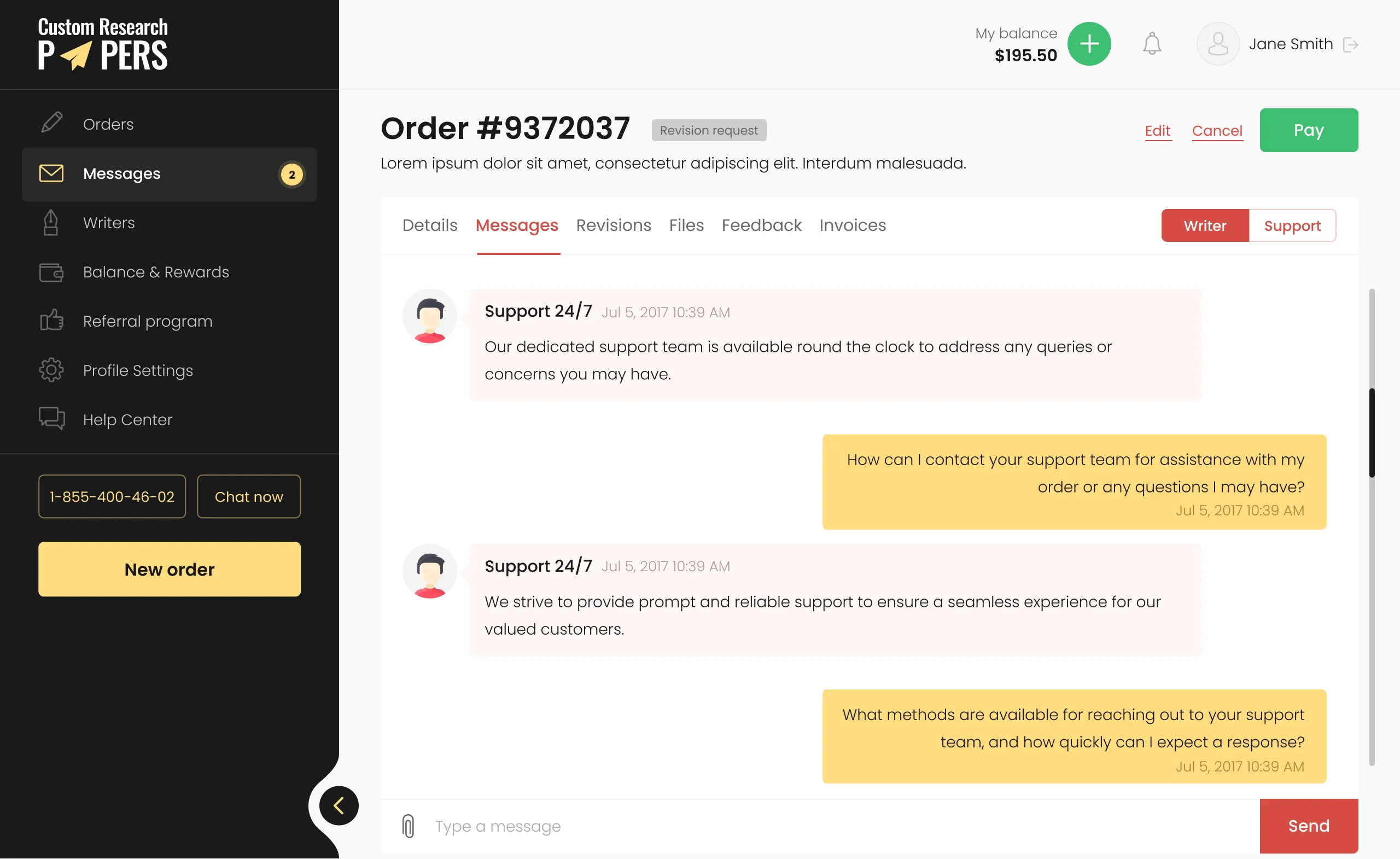 In this section, clients have the opportunity to learn about the quality of writers' work, the professionalism of the team, and the level of satisfaction with the obtained results.