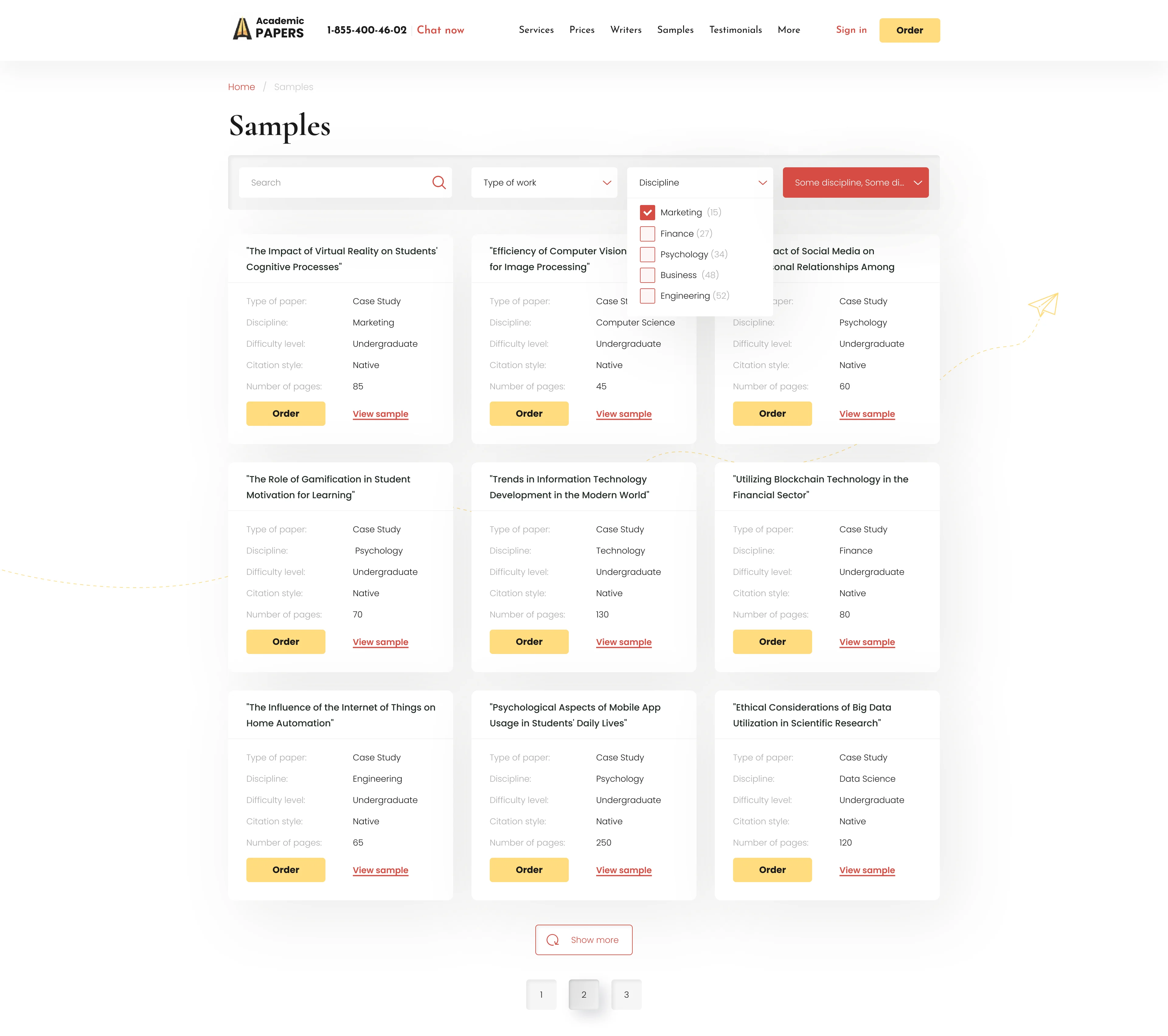 Provided samples of academic works from various disciplines.
