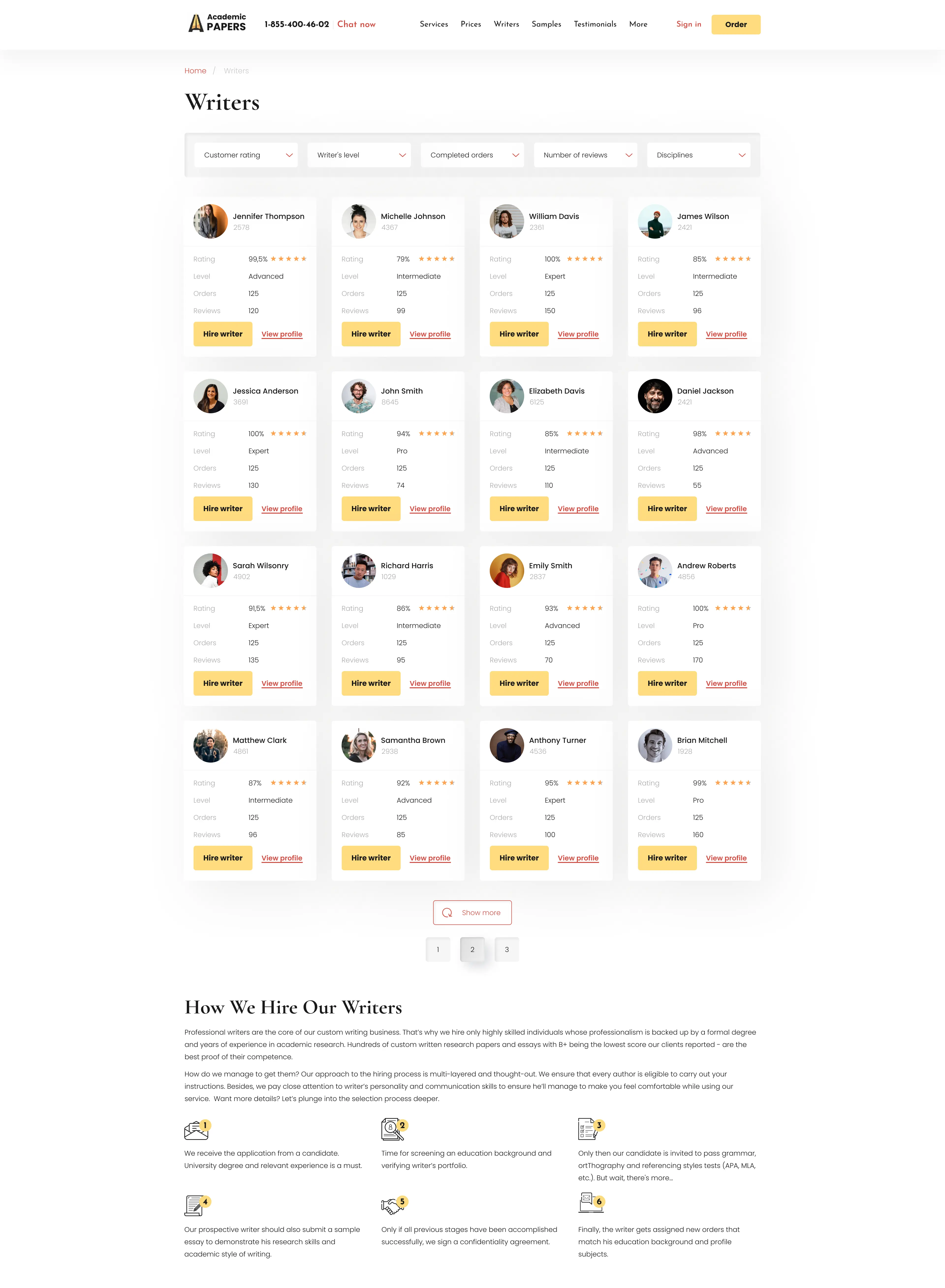 Information about our highly qualified writers, including their education, work experience, and primary areas of expertise.