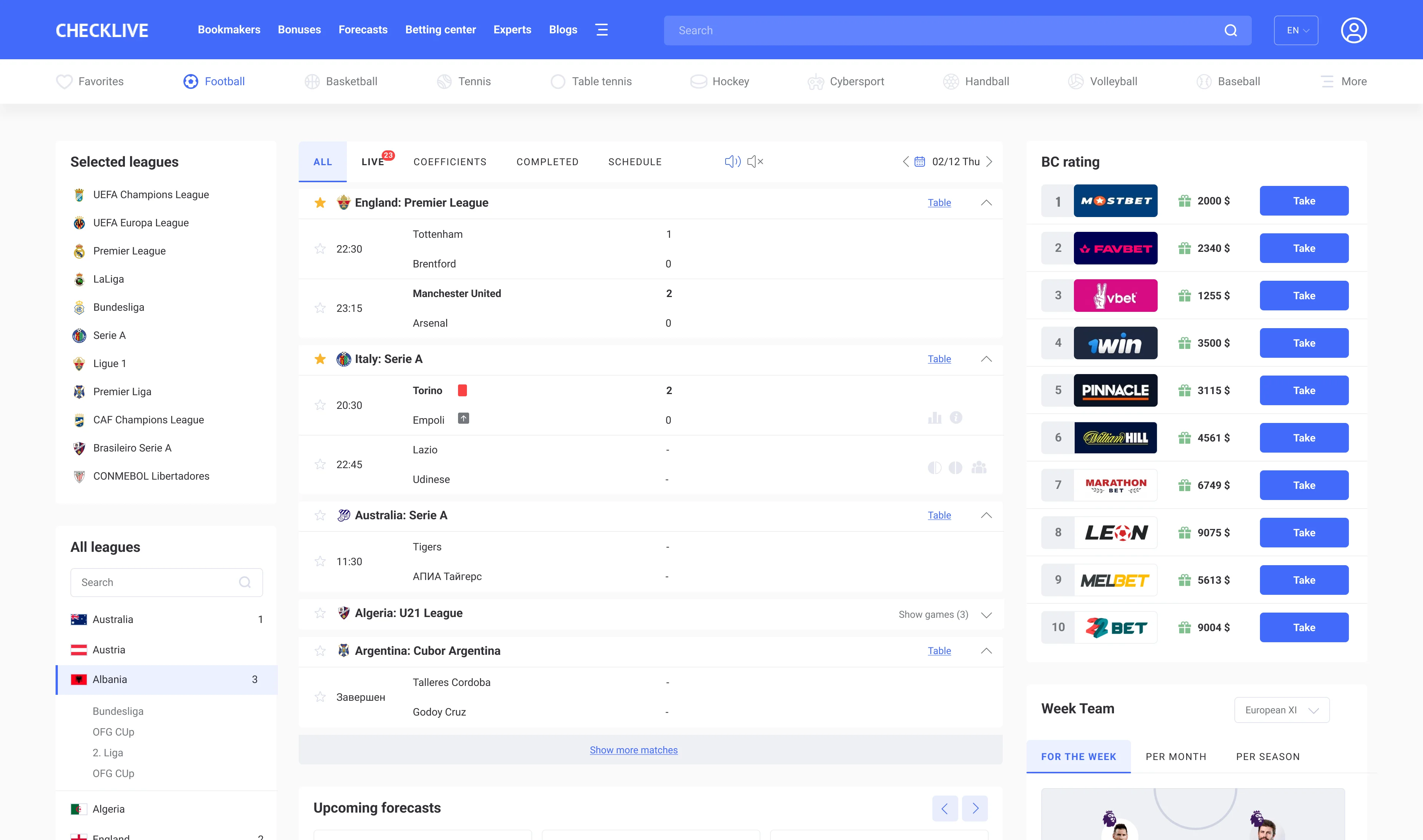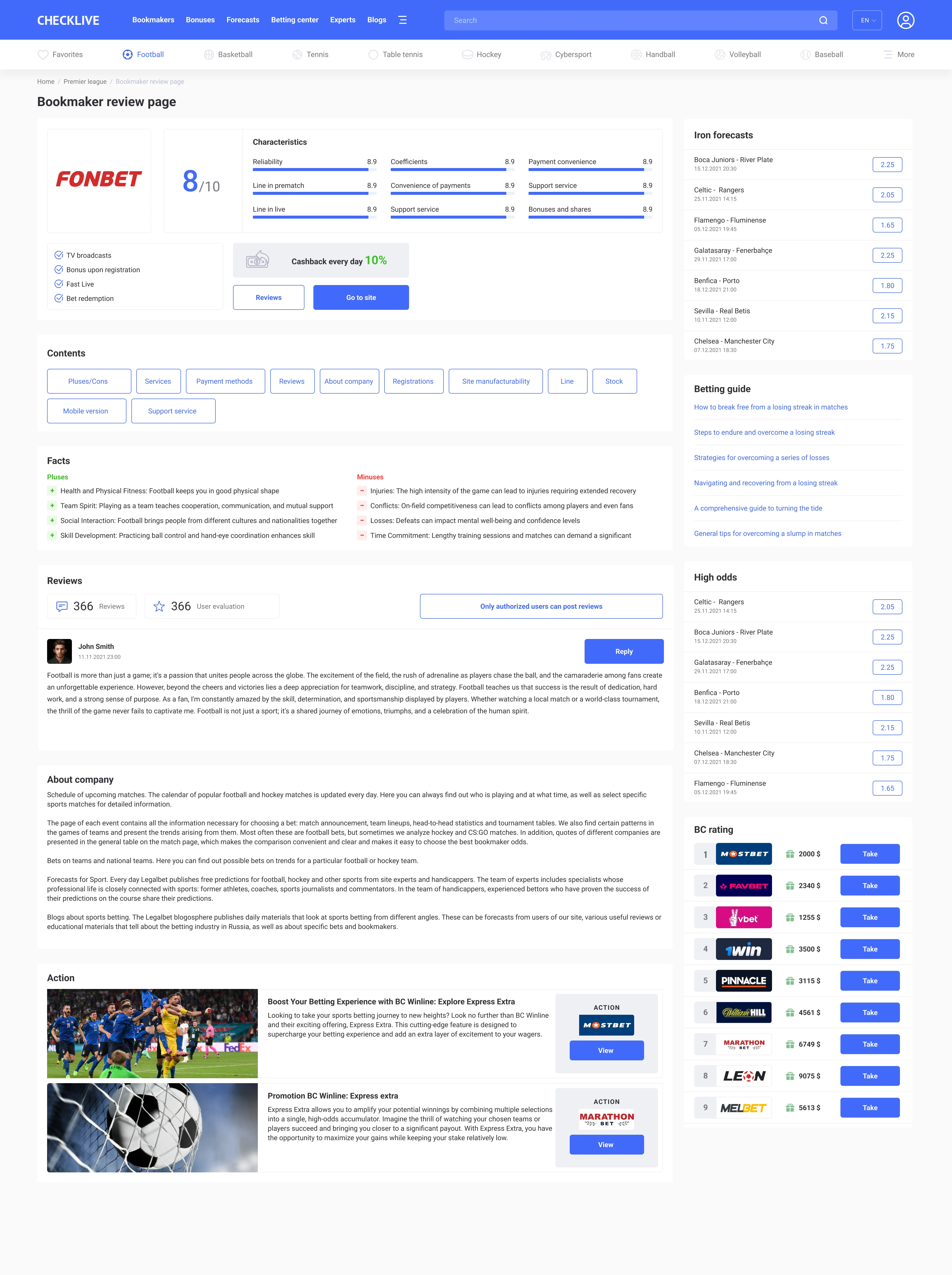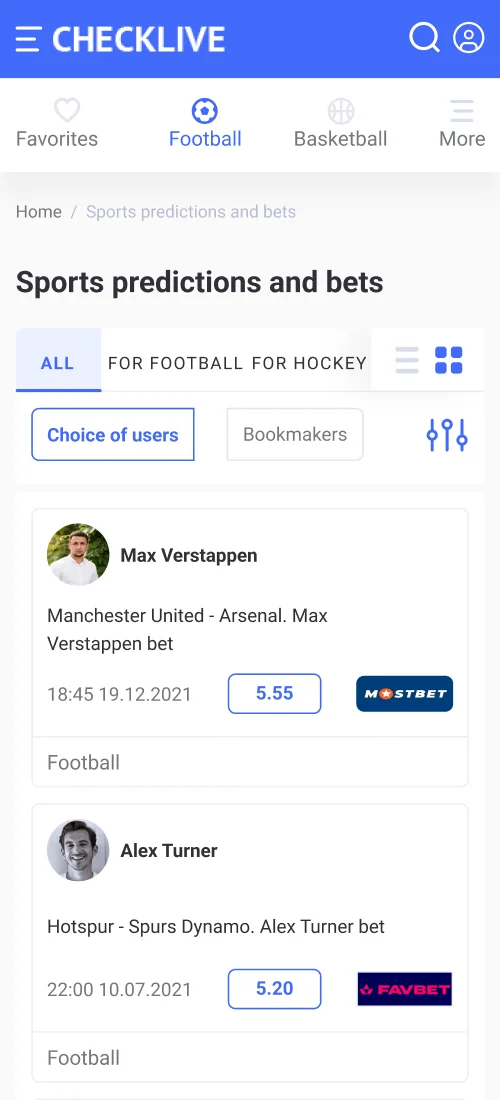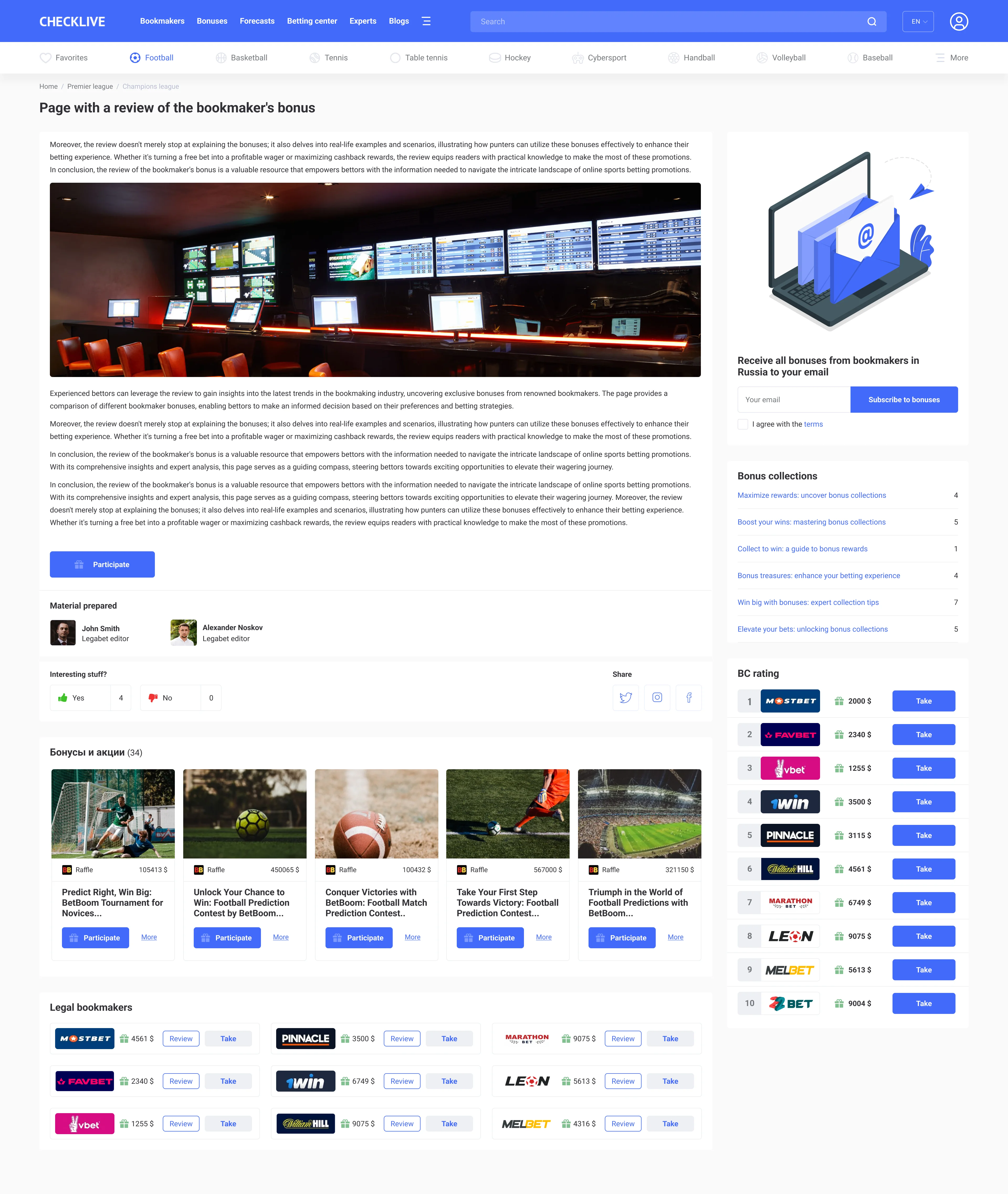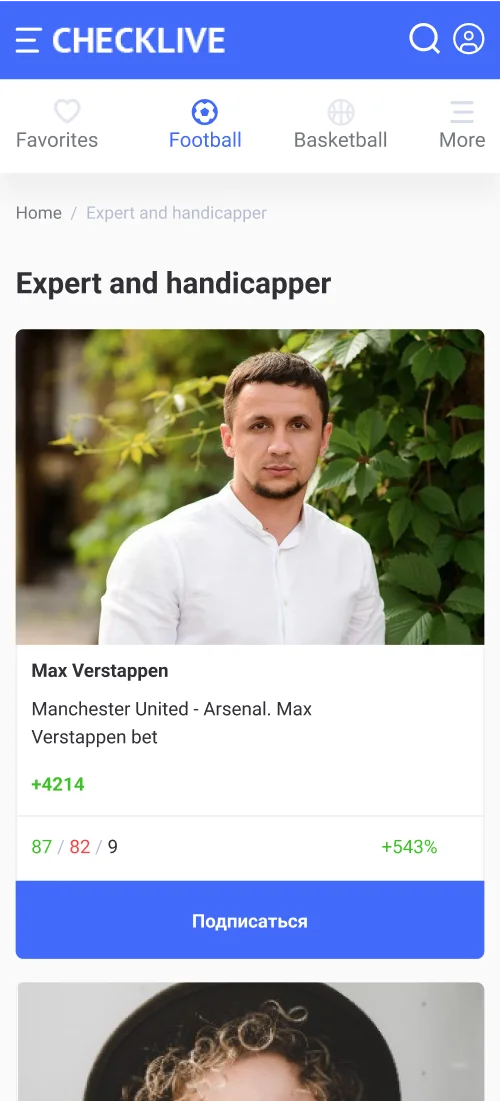 Expert and handicapper, expert forecast page, bookmakers