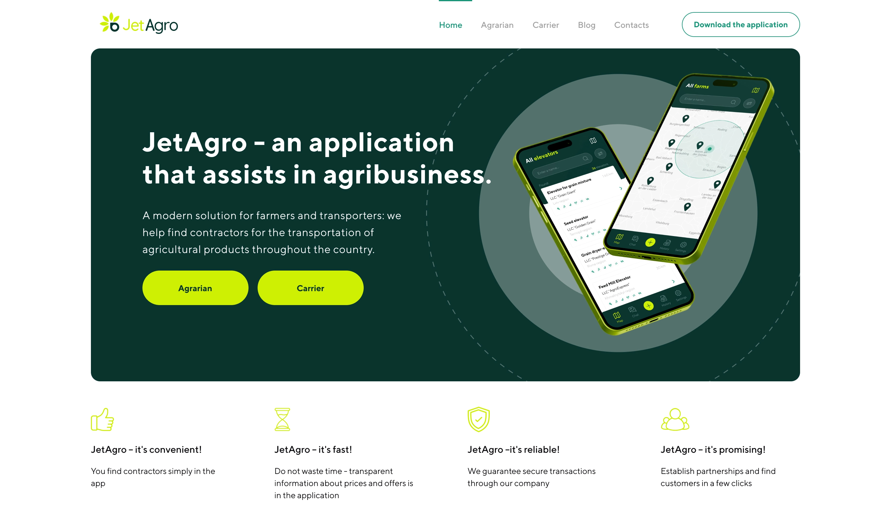 Створити сучасний, адаптивний сайт, який презентує додаток компанії та забезпечує зручний доступ до інформації для обох цільових аудиторій – фермерів та водіїв. Головним завданням було забезпечити просту і зрозумілу структуру для користувачів.